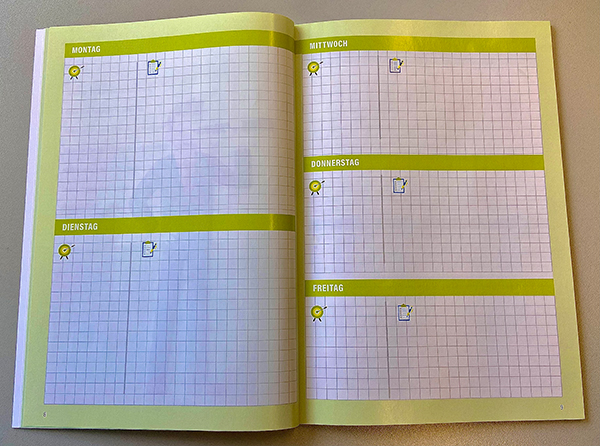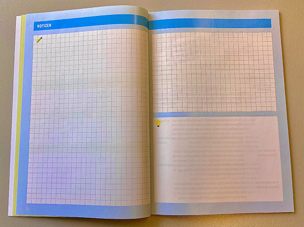 Im Meeting selbst möchten Sie wichtige Änderungen mit Blick auf die die Umstellung auf ein neues Rechnungsformat handschriftlich notieren, damit Sie es leichter in Erinnerung behalten. Auch dafür ist gesorgt. Der Datenschutz-Planer enthält neben Feldern für Ihre Tages-To-Dos designierte -Seiten für übergreifende und Meetingbezogene Notizen.